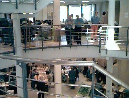 Remarkably, enough of the building was completed after the two days rest to allow the first round to be played in the venue despite a few holes. In fact, work continued each day on the building throughout the event. It was soon discovered that the architect had never been to a chess tournament, with the matches played on landings surrounding a central well with a wooden spiral staircase. The noise level proved a major distraction to all. Bob Smith, a strong anti-smoker, even resorted to using Edith Otene’s cigarette filters as ear plugs to try dim the racket. The top ten matches were eventually moved to another side room, so small and hot that no-one except the players in those matches was permitted to enter.